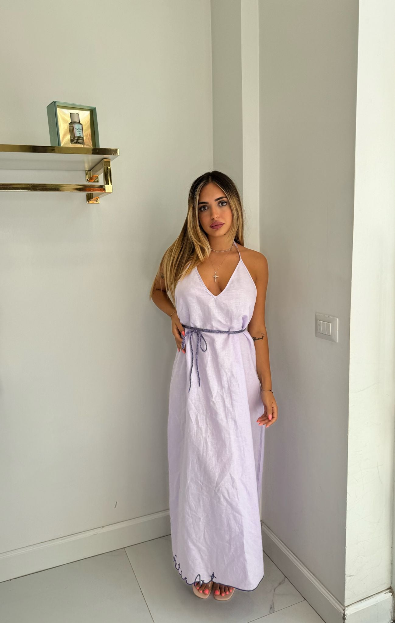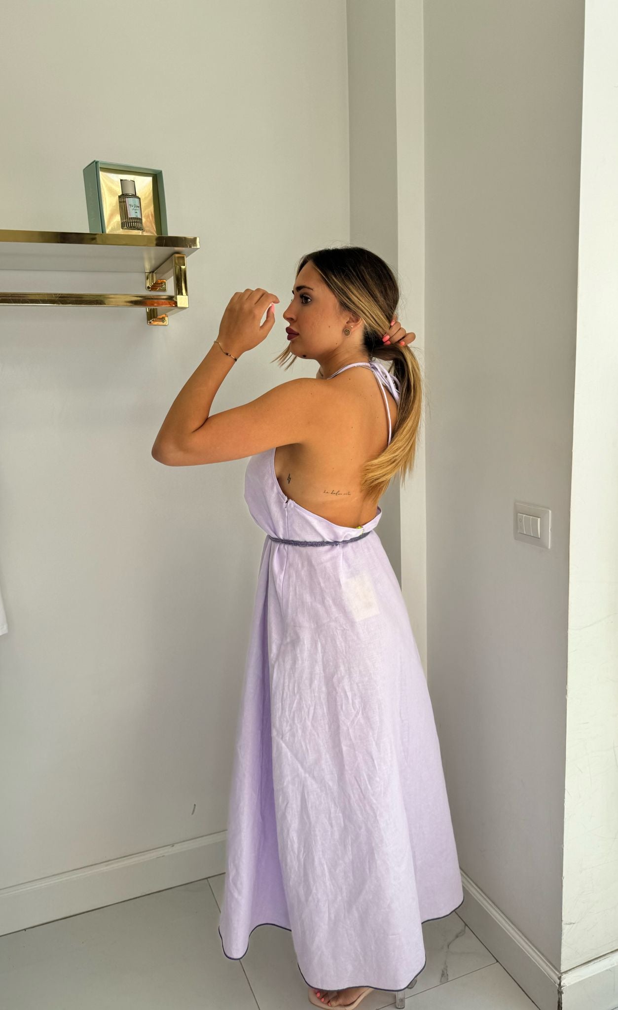 Abito "Twinset Actitude",lilla con piccoli particolari viola e piccola scritta "actitute" viola.