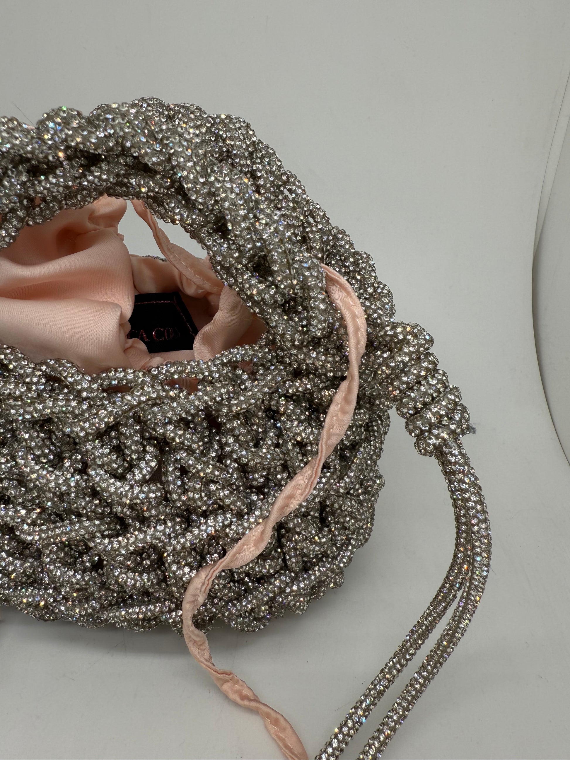 Bag totalmente fatta a mano,con manico in brillantini e tracolla.